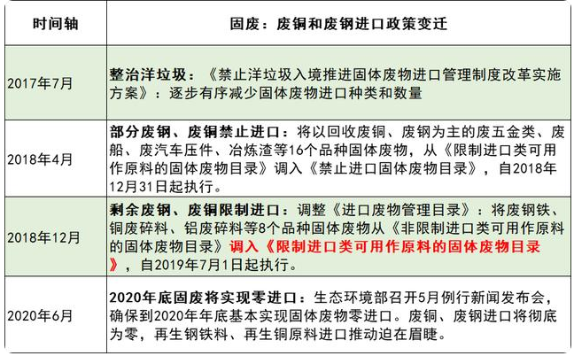 從進(jìn)口政策變化來看,廢銅、廢鋼基本是難兄難弟,從部分禁止進(jìn)口到2020年要全面實(shí)現(xiàn)零進(jìn)口,廢銅、廢鋼原有進(jìn)口政策將畫上歷史的句號(hào)。