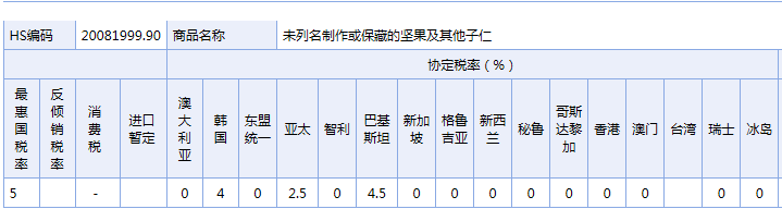 HS編碼: 20081999.90 ,貨品名稱:未列名制作或保藏的堅果及其他子仁(用醋或醋酸以外其他方法制作或保藏的)